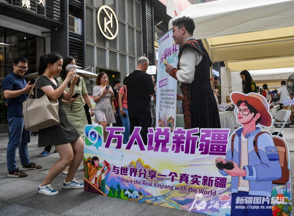 《 环球日报 》 来源标题:“万人说新疆”走进广东丨广州市民家门口打卡“新疆大巴扎” 9月2日,工作人员在广州市289艺术园区“新疆文化集市”向广州市民推荐新疆文创产品。 体验新疆“大巴扎”的热闹、欣赏热情的舞蹈表演、品尝地道美食特产、试穿民族服饰……9月2日,广州市的市民在家门口近距离感受到了新疆魅力。 9月2日,一名来自新疆的舞蹈演员在广州市289艺术园区“新疆文化集市”表演舞蹈。 “万人说新疆”走进广东分享会于9月2日至3日在广州市举行。本次分享会9月2日在广州市289艺术创意园区北广场举办了新疆特色文化集市,现场设置新疆特色展位,展出主题涵盖广东援疆、新疆非遗、新疆美食、新疆文旅、民族服饰。 9月2日,广州市市民在广州市289艺术园区“新疆文化集市”体验新疆非遗产品。 此次活动由新疆维吾尔自治区党委网信办主办,广东省委网信办、广东省对口支援新疆工作前方指挥部协办,南方新闻网承办。分享会从国内知名学者、外籍专家、海内外博主、援疆干部、港澳青年等不同视角,讲述有温度、有情怀、接地气的新疆故事。 9月2日,在广州市289艺术园区“新疆文化集市”上,参加“万人说新疆”走进广东分享会的两名嘉宾正在交流。 9月2日,一名工作人员在广州市289艺术园区“新疆文化集市”展示新疆非遗产品。 9月2日,一名工作人员在广州市289艺术园区“新疆文化集市”向广州市市民介绍“疆品南下 粤品北上”项目。 9月2日,广州市市民在广州市289艺术园区“新疆文化集市”打卡拍照。 9月2日,媒体记者在广州市289艺术园区“新疆文化集市”采访拍摄来自新疆的舞蹈演员。 |