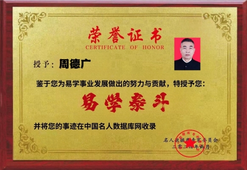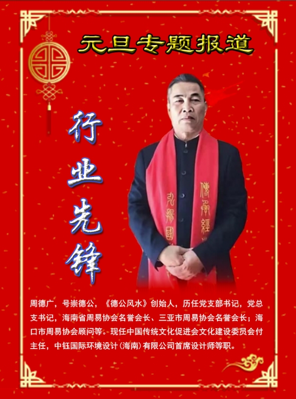 《 环球日报 》 周德广,号崇德公,人称:德公。中国当代易学泰斗,《德公风水》创始人,一九五六年出生于美丽的海南岛,一九八五年入党,历任党支部书记,党总支书记等职。在传统文化方面受聘于:中国传统文化促进会文化建设委员会副主任;社科院中国先秦史学会北易国学研究中心副秘书、秘书长;首届墨香文化节暨墨香国学北易论坛荣誉主席;海南省周易协会名誉会长;三亚市周易协会名誉会长;海口市周易协会顾问等职。一九八六年开始与周易结缘,利用工作之余开始刻苦学习,钻研易经风水知识,几十年来走遍祖国大疆南北,访贤问道,拜师取经,不断提高自己的易经风水堪舆技艺,真诚所至,感动众多易学业界明师并得到倾情传授。早期被唐朝紫光禄大夫杨筠松祖师的后传弟子杨勤读大师收为入室弟子,传授风水绝技。(周大师电话:17589762777) 2015年应邀参加在北京召开的易学高峰论坛期间,有幸与中国当代易学泰斗,"南邵北廖"之称的廖墨香教授结缘并被收为入室弟子,传授更深层次的易经绝学。期间机缘巧合,有幸得到台湾中华道教总会总会长李亨利老先生的点拨演教,对中华古版风水玄学术有了更深刻体悟,对多门派风水的特性有机结合创新应用,多年来为众多福主服务,反馈效果极好,得到一致好评! 经多年随师实战,生性天生对易经玄学悟性高,又刻苦勤奋好学,不断善于总结创新,自创一套适合新时期居家风水理论并著作《德公风水》和多篇易经水论文,发表在多家书刊杂志,其中论文《浅论易经知识在人居环境中的应用》,被党的十八大收为优秀论文并获奖! 周德广以风水绝技,通过上门堪查观察,摇钱起卦,心悟感应,结合卦象,以自独的水物,如自创的易经风水书法含义,书法色调;自制的风水物品;动物,植物摆件,经过五行通关调和,针对性的风水布局,解决了众多家庭,企业,学校长期困扰的问题,如大龄不婚嫁;久婚不生育;家运不顺;疾病困扰;子女叛逆;夫妻不和;经济收支失衡,入不敷出;企业员工不稳定,效益滑坡;学校高考成绩难以提升,难得被高等顶尖名校录取;小人暗中攻击,仕途无故受阻等等烦心事,通过布局加持,都能得到满意的解决。 周德广受邀参加中华传统文化助力经济发展专家研讨会 第十届中华传统文化创新发展论坛授予“新时代国学影响力人物称号”。 《易经》是中华文明的源头,是中国传统文化的枢纽和总纲领,也是凝结着远古先民睿智卓识的诸经之首、大道之源。儒、释、道以及其他诸子百家无不将易经思想收纳于其理论之中。 《易经》不但是中国传统文化的开山之作,也是凝结着远古先民睿智卓识的哲学著作,正如欧洲哲学权威荣格所说:“谈到世界的唯一智慧宝典,首推中国的《易经》。在科学方面我们所得到的定律常常是短命的,或被后来的事实所推翻。唯独中国的《易经》相传六千年之久,亘古常新,依然具有价值,与最新的原子物理学有很多相同的地方。” 易经实际上涉及了六项内容:科学、数学、逻辑学、哲学、修行学、占卜学。因此,它成为道教、儒教、阴阳术数的经典,三教在各自领域内对其有不同的理解和应用。后汉郑玄在《易赞》中将“易”定义为:简易、变易、不易。宇宙万物,时刻变化,人事亦如此,故曰“变易”;大宇宙之变化,井然有序,循环不已,有规律可循;小宇宙人之命运,同具法则性,故曰“不易”; 正因有“不易”之法则,即能了解宇宙天地法则,可以遵循;同样,小宇宙人的动向,亦能预知,并可规范,故曰“简易”。 周德广老师历年来潜心研究周易风水,致力于传承发扬中华传统易学术。 宇宙,在天上,呈现出日月星辰、昼夜以及季节气候等现象,在地上,形成山河、动植物等各种形体,产生错综复杂的变化。而宇宙的动静变化的规律,在动则刚毅,静则柔和的阴阳之道的牵引下演绎着,《易经》就用天、地、风、雨、雷、电、山、海八种自然现象代表的八卦,在反映着聚合与分离的群体,彼此调和与冲突的关系。 而风水,是《易经》在方位上的应用,是对人们居住行为的指导。 我们所处的环境,从物理的角度说,有地热、磁场、放射性物质、微生物这些物质与场信息,每时每刻都对我们发生着影响。比如,地球重力场强的地方,人就长不高。在地质断层带生活的人,癌症发病率高,车祸发生率是一般地方的10倍;从水文地质的角度说,土质、水质所含的有机、无机物,对人的影响不同;宇宙星体对地球的磁场、气候、旱涝、灾荒、疾病等影响更是巨大;从人体生命信息的角度说,不同的生命信息能量,在不同的位置与不同的自然能量对接、交换,影响也不相同。 神机妙算布风水,自成一派新思维 这一路走来,周德广先生对中华优秀传统文化保持着浓厚的兴趣和爱好,并为继承、弘扬、传播和捍卫中华优秀传统文化作出了巨大贡献,经历了多年的潜修和实践,他不仅学术成就显著,在实践方面更是有着独到的见解,成为了易学文化领域极富有影响力的核心人物之一。我们坚信,在周德广先生的努力下,我们中华传统易学文化一定可以在国际的舞台上绽放出它最绚烂的光彩! 在修建新房或者乔迁新居的时候很多人都会请风水先生来看一下家中的风水布局如何?但是 也有的年轻人不是很懂这些。周德广就曾经遇到过一对刘某夫妇, 二人已经年近四十, 结婚十六年 来, 膝下仍无一子一女,求子心切的二人虽到处求医问药,但始终没有结果