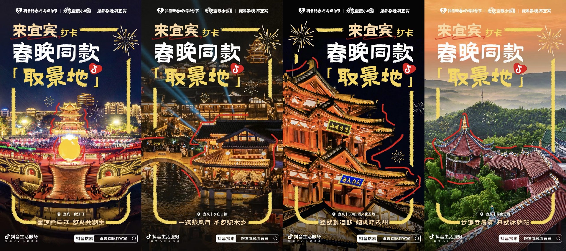 《 环球日报 》 引言: 大街小巷挂起大红灯笼,家家户户早早贴好了福字,全国人民必备的过年仪式——春晚也在倒计时中。有没有想过,电视里万人同庆的中国年,若能置身其中,会有怎样的感受? 今年,春晚分会场官宣落地宜宾。这座“万里长江第一城”,年味直接翻番——三江口夜空,五千架无人机点亮新年祝福;合江门的灯笼天幕流光溢彩;李庄古镇早早备下游园会、灯光秀,从早到晚快乐不打烊。 为了让这份热闹不只停留在春晚直播中,抖音生活服务联动央视总台春晚分会场宜宾,落地「跟着春晚游宜宾」活动,联动「抖音新春吃喝玩乐节」「发现宝藏小城」「来南方过年」三大IP,想把天南地北的你们请进来,尝美食、看美景、赏非遗,过一个原汁原味的春晚同款中国年。 央视严选,在川南打卡春晚同款中国年 长江起点合江门、曾被列为“中国历史文化名镇”的李庄古镇、飘着百年酒香的501白酒文化胜地……央视总台春晚严选的实力毋庸置疑,而「跟着春晚游宜宾」,就能轻松把屏幕那端的年味,装进自己的新春旅程。 站在“万里长江第一城”的地标合江门,脚下是三江汇流,眼前是整座城市为新年亮起的绚丽霓虹,随手一拍,便是朋友圈里绝佳的开年素材。 走进在长江边坐落千年的李庄古镇,静下心来体味川南水乡的古朴静谧。若是遇到李庄白肉的小馆子,不妨一试,这便是最正宗的古镇年味。辞旧迎新,少不了举杯共祝,在501白酒文化胜地打卡从明清传承至今的古酒坊,敬绵延不绝的文化传承,也敬新年崭新的开始。 这一次,不必花大把时间做攻略,人气明星和达人已经整装待发,作为「宝藏宜宾推荐官」,手把手带你解锁,如草龙等即将登上春晚舞台的同款非遗,以及其它宝藏好去处。想来一碗麻辣鲜香的宜宾燃面?亦或是爽吃一顿热气腾腾的土火锅?数十位百万粉丝达⼈将为你提前踩点,交出一份闭眼冲也不会出错的美食路线。 众多优质商家也将上架优惠套餐,以满满当当的诚意和大家共贺新年。打开抖音搜索#跟着春晚游宜宾,有机会在活动会场抢到超值优惠券,团美食、游玩套餐更划算,也为新年添个好意头。 福到宜宾,新春狂欢“马”上开始 耍狮舞龙、置办春酒……宜宾的年俗丰富多彩,不论是不是春晚严选,都值得亲身体验。为此,「跟着春晚游宜宾」还在取景地,备好了不重样的精彩活动,承包你整个春节的快乐! 新年要有“福”,更要有“胡”!春节档电影《熊猫计划之部落奇遇记》的萌宠担当——熊猫胡胡与抖音生活服务联动,即将来到合江门,为大家带来新年的好福气。“春晚烟火落合江,千年店味藏古街”,合江街也张灯结彩,将在整条街的年味中开张春节限定「年味集市」,可以试着学习一门非遗手艺,提笔写一副春联,或是淘几件走心的创意文创,再从街头吃到巷尾,尽情融入南方新年的烟火气。 而在李庄古镇,一场红火的“请春酒”正待开席,等你来体验“吃三台”的年俗,好好体味那份厚重的乡土人情。 若想换种节奏过年,就去宜宾天地。春日主题市集不设重样,集章打卡、民俗手作、闲逛漫谈——在这里,假期不必赶场,只需与好友一起,享受新年假期中难得的闲暇时光。 结语: 万里长江在此启程,千年古镇在此守岁。宜宾全城商家也备好了年味盛宴。搜索#跟着春晚游宜宾,进入活动主会场,即可直达吃喝玩乐的优惠套餐,到店核销可享好礼,只等你来。畅游宜宾之余,不妨带话题#跟着春晚游宜宾,晒出你的独家过年路线——把吃到的美食、看过的美景和遇见的惊喜统统分享出来,还有机会赢取现金奖励和文旅消费券,和千万人一起,过个热热闹闹的宜宾年。 酒已温好,江风不急,就等你如约而至,来宜宾过个有灯有酒有烟火的中国年。 |