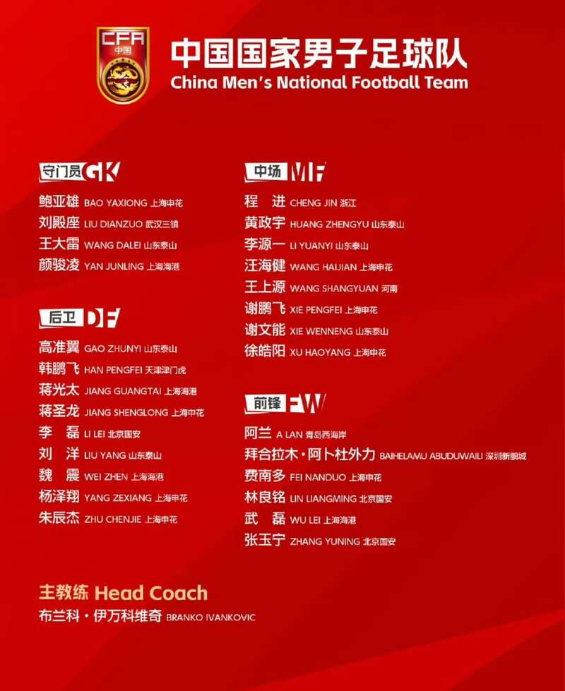 《 环球日报 》 中国青年报客户端大理8月21日电(中青报·中青网记者? 郭剑)8月21日上午,国足主教练伊万科维奇通过网络直播形式公布本期国足集训27人名单。新一期国足球员将在参加完足协杯赛事后于8月23日赴大连报到,备战2026美加墨世界杯亚洲区18强赛9月2场开局之战:9月5日在琦玉客场挑战日本队,9月10日在大连梭鱼湾主场迎战沙特队。 8月21日,国足公布18强赛首期集训27人名单。中国足协供图 与伊万科维奇接手球队后征战36强赛阶段人员相比,补入浙江队中场球员程进表明教练组希望提升防守强度的态度:日本队与沙特队皆为亚洲强队,既有精准长传转移能力,又具备局部短传配合渗透功夫,国足需要依靠中场球员的快速移动对防线形成有效支持和保护,一旦陷入僵持局面,“不丢球”甚至“少丢球”都具有重要战略意义。 入选集训名单球员对于伊万科维奇为国足打造的442基础阵型均不陌生,尽量压缩对手进攻空间则是所有场上球员的共同任务——18强赛难度相较36强赛至少翻倍,面对同组对手日本队、沙特队、澳大利亚队、巴林队和印尼队,国足几无“容错空间”,每一场比赛、每一粒进球和失球,都会直接影响最终结果。?? 据中青报·中青网记者了解,国足将于9月2日由大连启程前往日本,届时约有25名球员随队出征,而正式比赛23人名单、赛时报名18人名单的选择,将根据集训球员状态确定。 附:国足新一期集训27人名单 守门员:王大雷、颜骏凌、鲍亚雄、刘殿座 后卫:蒋圣龙、朱辰杰、蒋光太、高准翼、魏震、韩鹏飞、杨泽翔、李磊、刘洋 中场:程进、黄政宇、李源一、汪海健、王上源、谢鹏飞、谢文能、徐皓阳 前锋:武磊、张玉宁、阿兰、费南多、拜合拉木、林良铭 |