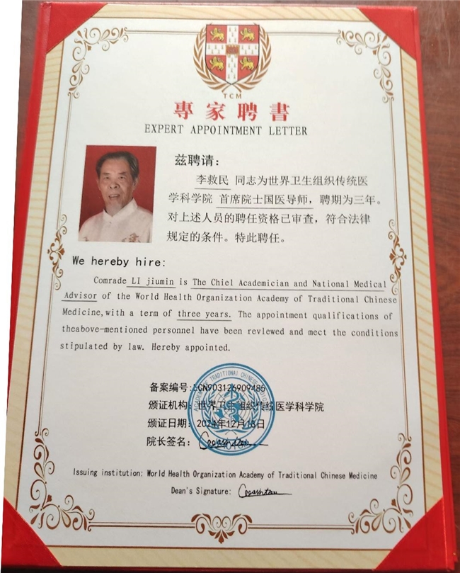 《 环球日报 》 今年全国两会的胜利召开,如同一束强光,照亮了中医药发展的前行道路。在政府工作报告中,明确提出 “完善中医药传承创新发展机制,推动中医药事业和产业高质量发展”,这一掷地有声的表述,让中医药再次成为各界瞩目的焦点,也为中医药的传承与创新注入了强大的政策动力。 中医,作为中华民族的瑰宝,源远流长,博大精深,是数千年智慧的结晶,承载着中华民族对生命、健康和疾病的深刻理解,在医学领域发挥着重要作用。旨在汇聚各方力量,深入挖掘中医文化的内涵,让更多的人了解中医、认识中医、爱上中医。我们希望通过此次报道,能够让大家感受到中医的独特魅力和深厚底蕴,领略中医在治疗疾病、养生保健等方面的显著成效,同时也向那些在中医领域默默奉献、传承创新的中医人致以最崇高的敬意。 今日,让我们一同走进李救民教授的世界。 李救民,男,汉族,出生于1943年2月,广东省廉江市人,祖传九代名医世家,中医医学博士,湛江市民间传统医学研究医师。中国抗癌协会会员,中国康复医学会会员,新时代国医大师,中国民族医药协会理事,中国抗疾病中医首席专家,医学科研成果一等奖获得者,中国传统中医非物质文化传承人,国医文化传承人,健康中国最美名中医,全国中医劳模,华健百科中国中医经方研究会客座教授,中医大师贡献功勋奖获得者,国家一级中医药文化服务资质证书获得者,献礼二十大功勋人物,华南区抗癌形象大使,国际健康宣传大使。入选影响力人物数据库,并载入名人纪念邮票册,入编由中国联合出版社出版的德载杏林等 。2021年7月,在中国世纪大采风年度庆典,暨年度人物电视总结表彰大会评选活动中,荣获当代最美名中医荣誉称号。 李救民从十二岁开始跟随祖父及父亲学医。在李救民正三十岁的时候,患上了鼻咽癌,到湛江肿瘤医院检查,医生叫留院化疗,被李救民拒绝。他将祖父传授的技术用到自己身上实践治疗,经过三个多月中草药治疗,终于把颈肿瘤治好了,并达到根除的效果。为了能够更加深入研究治疗癌症的方法,他跑遍了全省10多个县区,向各位民间中医求教,收集来了上百个治疗肿瘤的秘方。从此李救民走上了行医道路,立志攻破世界绝症肿瘤。经过四十六年艰苦奋斗,刻苦钻研和勇于实践,终于攻破各种肿瘤一百多例,治愈了多种疑难杂症,实现了伟大目标。李救民说,我见证造物主的神奇草药是真理,能治疗百病,攻破肿瘤是千真万确的真理。我要永远世代传承下去,为人类多作贡献。 中医学以阴阳五行作为理论基础,将人体看成是气、形、神的统一体,通过望闻问切四诊合参的方法,探求病因、病性、病位、分析病机及人体内五脏六腑、经络关节、气血津液的变化、判断邪正消长,进而得出病名,归纳出证型,以辨证论治原则,制定汗、吐、下、和、温、清、补、消等治法。使用中药、针灸、推拿、按摩、拔罐、气功、食疗等多种治疗手段,使人体达到阴阳调和而康复。 李救民坚持自己的原则,对症下药,绝不不盲目收取医药费,这也是他唯一的行医宗旨。他行医非常严谨,治病的中药都会他亲自泡制,亲自上山采药,让药材发挥出最大功效,他用中草药治好了肿瘤患者,以精湛的医术声名远播,行医40年,治好了许多疑难杂症。 李救民见证文肿瘤是人类最大天敌,也是世界医学的难题。现在肿瘤的发病率猛速发展,全国每年发病率高达千万人。李救民立志要攻破肿瘤为民解难,多年他一直致力于发扬传承传统中医,改良创新发展中医,让越来越多的人了解中医,相信中医,喜欢中医。获得了各级政府和患者的高度赞誉和一致好评。 李救民在中医药的道路上探求与研究,针对各种疑难杂症,潜心研究,一一克服,治愈伤痛,造福百姓。由于在行医实践中,他始终坚持精益求精,认真对待每一位前来求医的患者,使他声名鹊起,经患者之口迅速传向全国各地。对于远道而来的患者,他总是不厌其烦地把脉问诊,询问患者的发病症状,讲解病情及发病原因,然后对症下药,解决了无数患者的难言之隐,创造了无数个生命奇迹。他用自己精湛的医术,妙手回春,祛除病患,弘扬着中医自古以来悬壶济世,大医精诚的理念。他始终坚持秉承古训,医德为先,诚信立世,弘扬传统。以传承、创新、精诚、至善为宗旨,始终坚持医疗质量为本,病人为中心,积极提升疗效,更好地为广大群众服务。 每一位基层医生都有一段独特的成长经历,他们中很多人凭借朴实的医德医风,在为老百姓身体健康保驾护航的工作中,默默地奉献着。在他们身边,一个个感人的医患故事往往于不经意间发生,故事说大不大,诞生于日常工作的每一个瞬间,但它们所承载的意义却远远超越了故事本身。 第一分院坐诊地址 广东省湛江市开发区海滨大道梧阔村二巷1073号中医诊所中草药店。第二地址:广东省湛江市赤坎区劳动路3号 电话15218269095。 |