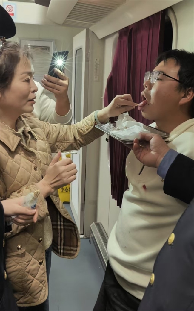 《 环球日报 》 (环球日报新媒体西安讯 记者 诗闻)2025年10月25日,兰州开往西安的K288次列车广播突然响起:“九号车厢有旅客突发急病,急需医护人员!”一位22岁小伙舌部严重出血、面色苍白、站立不稳,危急时刻,一位掌握中医急救技术的学员挺身而出。让我们见证传统中医如何在紧急关头发挥关键作用。 “九号车厢有旅客突发急病,请医护人员速来协助!” 10月25日,当这则紧急广播在K288次列车响起时,中医急救学员赵喜红立即起身赶往现场。只见一位年轻小伙瘫坐在座位上,嘴角不断渗血,面色惨白,身旁的家属焦急万分。 危急时刻显担当 22岁的患者侯少凡在上车前饮酒用餐时咬伤舌头,当时未加留意。谁知列车行进中伤口开始持续出血两个多小时,出现头晕、恶心、双腿发软等症状。更令人担忧的是,这位年轻人已有高血压、糖尿病、胃出血等病史,腰脊柱旧伤导致身体部分麻木,还长期保持着熬夜、饮酒、抽烟的不良生活习惯。 面对持续出血的危急情况,赵喜红沉着应对。她运用所学的中医急救知识,采取以下救治措施: 精准按压止血:运用中医按压法,在相关穴位进行精准按压,促进凝血; 中药外敷修复:配合使用“无疾液”进行局部止血修复; 全程监护观察:持续半个多小时守在患者身边,直至出血完全停止。 令人惊叹的是,在没有现代医疗设备的列车上,仅凭中医的急救方法就成功控制住了持续两个多小时的严重出血。 中医急救的价值体现 这个案例生动展现了中医急救的三大优势: 简便有效:无需复杂设备,徒手就能施救; 快速响应:在医疗资源匮乏环境下尤其适用; 标本兼治:既止血治标,又通过穴位调节治本。 健康警钟长鸣 这个案例也给我们敲响了警钟: 慢性病年轻化趋势值得警惕; 规律作息、健康生活方式的重要性; 掌握基本急救技能的必要性。 【结语】 这次列车上的成功施救,不仅展现了中医急救的独特价值,更彰显了“医者仁心”的精神。让我们为赵喜红的善举点赞,也期待更多人关注中医急救,学习急救知识,在关键时刻能够伸出援手。 【温馨提示】 如果您想学习中医急救知识,欢迎关注我们的微信公众号,我们将持续分享实用健康知识。生命至上,急救有方,让我们共同守护生命健康! |